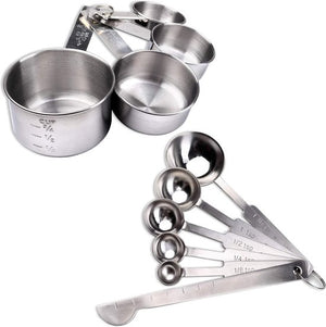 Schram 10-delige set maatlepel en maatbeker. Gemaakt van hoogwaardig roestvrij staal. Daardoor zeer duurzaam en gemakkelijk te reinigen. Stapelbaar, neemt weinig ruimte in beslag in je keuken Ideaal voor het meten van meel, suiker, zout, kruiden, koffie, melk, olie, water enz.