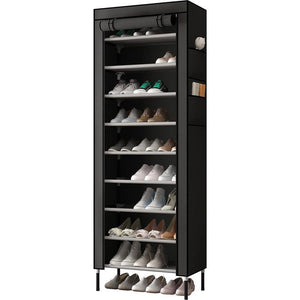 10 lagen 16 mm extra dikke staven stevige schoenenkast opbergorganizer standaard 58 x 28 x 170 cm met extra dikke Oxford stof stofdichte hoes houdt tot zwart