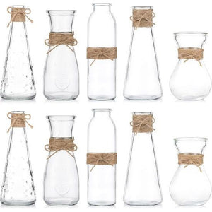 10 stuks heldere glazen bloemenvazen, glazen vazen Bud met touwdesign in verschillende unieke vormen, bloemenvaas middelpunt voor bruiloftsreceptie, bruidsreceptie, babyshower, feest.