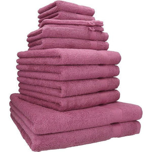 12-delige badstof handdoekenset, 2x lighanddoeken, 4x handdoeken, 2x gastendoekjes, 2x zeepdoekjes, 2x washandjes, bessen