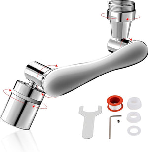 【1440 graden rotatie】 Deze draaibare multifunctionele verlengkraan beschikt over 4 roterende delen, die 360 graden in alle richtingen kunnen worden ingesteld en naar wens kunnen worden gebogen of gevouwen, zodat water elke hoek van de gootsteen kan bereiken. De opvouwbare robotarm neemt weinig ruimte in beslag en is geen groot onhandig/onbeweegbaar obstakel in de wastafel 【2 waterstroommodus】 De kraanbeluchter beschikt over twee wateruitvoermodi: met een dubbele sproeikop kun je het water tussen de geventileerde straal en de krachtige sproeier instellen, je kunt 30% meer water besparen. Ideaal om energie te besparen en waterkosten te verlagen Eenvoudige installatie: onze draaibare kraanbeluchter kan eenvoudig aan de kraan met 22 mm/24 mm schroefdraad worden bevestigd. Verwijder gewoon de oude en installeer direct onze 1440° draaibare kraanbeluchter door de schroefdraad. Onze kraanbeluchter heeft een universeel ontwerp dat kan worden geïnstalleerd, of je kraan nu mannelijk of vrouwelijk is. Premium materiaal: de Splash filterkraan is gemaakt van robuust koper en meerlaagse coating voor extra duurzaamheid en duurzaamheid. Het roest niet gemakkelijk. De siliconen afdichtring is milieuvriendelijker, heeft een betere afdichting, goede flexibiliteit, anti-aging, niet giftig en smaakloos, veiliger Draaibare multifunctionele verlengkraan: het kraanopzetstuk kan worden gebruikt voor wastafelarmaturen, keukenkranen, badkranen en hoogdraaibare kranen. Praktisch voor het afwassen, reinigen van moeilijk bereikbare hoekwastafels. Bevrijd je handen bij het wassen van gezicht/ogen, tandenpoetsen en het wassen. Voeg een fonteineffect toe aan de bekkenkraan, kinderen zullen blij zijn om de handen onder de bubbelstraal te bereiken