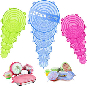 18-delige siliconen dekselset - herbruikbare siliconen deksels voor potten - extra scheurbestendig en rekbaar, geschikt voor de meeste containers - premium deksels voor blikjes en kommen