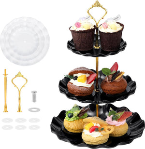 2 stuks 3 etages, cupcake-standaard, dessertstandaard, herbruikbare gebarenstandaard, taartstandaard voor bruiloft, verjaardag, theefeest (zwart en wit)