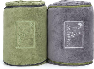 2 stuks hondenhanddoeken, microvezel, extra absorberend, handdoeken voor honden met zakken, sneldrogend, badhanddoek voor honden en katten, 90 x 50 cm, grijs en groen