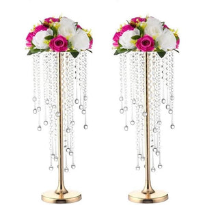 2 stuks woondecoratie bloem middelpunt acryl kristal bruiloft straat bewegende vazen gouden bruiloft decor vaas middelpunt bruiloft bloemenvazen metalen kristallen bloemenvazen (55cm)