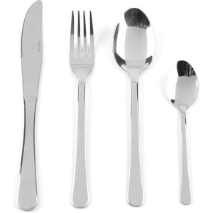 INCLUSIEF: Bestekset voor 6 personen - 6 messen (4,5 mm), 6 vorken (2,3 mm), 6 lepels (2,3 mm), 6 theelepels (1,9 mm). ROESTVRIJ STAAL: Gemaakt van hoogwaardig, duurzaam 18/0 roestvrij staal met een spiegelafwerking. GOED GEBALANCEERD: Ligt comfortabel in de hand en is vaatwasmachinebestendig voor eenvoudige reiniging. VEELZIJDIG: Voor feesten, geschenken, nieuwe huiseigenaren en feesten.
