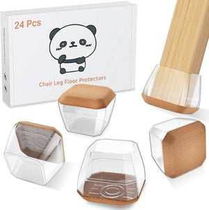 24 stuks stoelpootdoppen, vierkant, middeltransparant, siliconen beschermkappen voor stoelpoten, met slijtvast viltkussen, elimineer geluiden en anti-krassen (rond, 22 mm-32 mm)