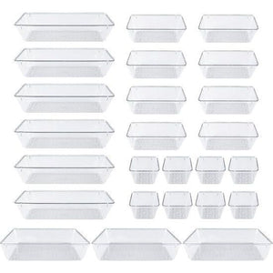 25 stuks lade-opbergsysteem, lade-organizer, transparant, kunststof, met 4 maten, make-up-organizer, te gebruiken voor make-up, organizer, keuken, badkamer, kantoor