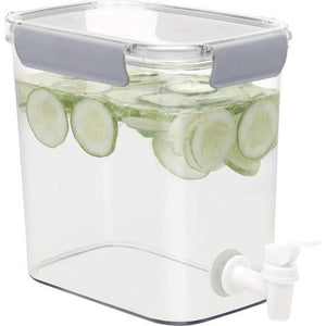 Voor verfrissend koele dranken: met onze 3,5 liter drankdispenser kun je heel eenvoudig koude dranken serveren. Druk op de kraan en klaar – geen optillen of uitgieten Gemaakt van BPA-vrije kunststof: onze waterdispenser met kraan is gemaakt van BPA-vrij PET-kunststof, dat geen schadelijke stoffen afgeeft en je dranken een vreemde smaak geeft. Past in de meeste koelkasten: de drankdispenser is 19,5 cm hoog en 14,5 cm breed. Met de tapkraan bedraagt de totale hoogte 24 cm. De dispenser past in de meeste koelplanken en neemt niet veel ruimte in beslag op tafels of werkbladen. Langer genieten van dranken: het deksel heeft kliksluitingen en een rubberen ring voor een stevige grip. De drankdispenser tapkraan is ook voorzien van een rubberen afdichting om lekken en druppels te voorkomen. Eenvoudig vullen en roeren – de sapdispenser met tapkraan biedt een grote opening voor comfortabel vullen, roeren en toevoegen van fruitschijven en ijs