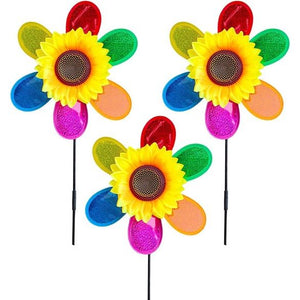 3 stks tuin windmolens zonnebloem windgong kleurrijke pailletten windmolen buiten bloem vuurraderen tuindecoratie voor tuin tuin gazon decoraties vogel afschrikmiddel