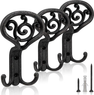 3 stuks garderobehaken vintage kledinghaken zwart wandhaken [klimaatneutraal] stabiele kledinghaken muur incl. 12x schroeven en 6x pluggen retro shabby chick landhuisstijl