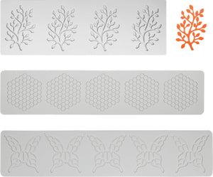 Materiaal: onze siliconen mal bladen zijn gemaakt van voedselveilige siliconen, sterk en duurzaam, niet gemakkelijk te vervormen, milieuvriendelijk en niet gemakkelijk te scheuren om aan je behoeften in verschillende scenario's te voldoen Verpakking: we hebben in totaal drie verschillende patronen van siliconen bloemmat vormen, vlinderbloem mat grootte: 38,5 x 7,8 cm, honingraat grootte: 37 x 7,8 cm, bladgrootte: 29,4 x 9,7 cm, verschillende maten en patronen om aan je veelzijdige behoeften te voldoen Geschikte temperatuur: werkt uitstekend met -40 tot 230 ℃ Gemakkelijk schoon te maken: eenvoudig te gebruiken, gemakkelijk schoon te maken, vaatwasmachinebestendige siliconen mallen