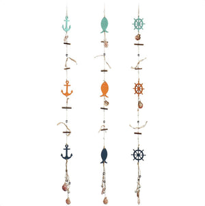 3 x hangdecoratie maritiem - decoratie om op te hangen - stuurwiel, anker en vissen van hout met schelpen - hangdecoratie (3 stuks - 100 cm)