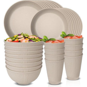 32-delige onbreekbare serviesset voor 8 personen, campingserviesset, kunststof borden en kommen, grill-serveerborden, kommen, kopjes, feestserviesset voor picknick, beige