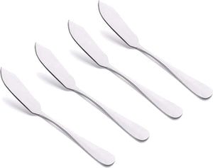 De 4-delige kaasschudset is gemaakt uit volledig ééndelig en duurzaam roestvrij staal. Bestand tegen aanslag, corrosiebestendig en BPA-vrij. Ergonomisch ontwerp en gladde randen van de keukengereischudders zorgen voor een goede grip en bereik. Het ergonomische ontwerp en de gladde randen van de ontbijtmesverdelers zorgen voor een goede grip en bereik. De kruidenschudder snijdt met gemak alle soorten kaas zoals Brie, Camembert, Mascarpe en Boursault. Werkt met pinda's, jam, gelei, mayonaise, dip en andere spreads op crackers. De boterspatel kan ook worden gebruikt voor het smeren van taarten, koekjes en cupcakes met harde schelpen. Deze keukengereedschapset heeft een klassiek ontwerp dat goed past bij uw bestaande bestek. Heeft een smalle hals en een gebogen rand die uitmondt in een puntige punt. Mini-serveerhulpjes van 15 cm zijn klein genoeg om zelfs door een kind te kunnen serveren. Gemakkelijk schoon te maken en te onderhouden. Vaatwasserbestendig