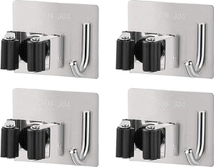4 stuks mophouders met haken, bezemhouder, muur zelfklevend, roestvrij, zonder boren, tuingereedschapshouder, bezemhouder, voor keuken en badkamer (metallic)