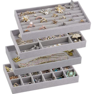 4 stuks sieradentrays, sieradenorganizer, lade, sieradenkistjes, stapelbaar, voor sieraden, oorbellen, armbanden, ringen (grijs)