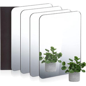 4 stuks spiegels, acrylspiegel, 14 x 18 cm, afgeronde hoekspiegel, acrylspiegel, wanddecoratie met magneet, voor school, badkamer, woonkamer, kantoor, decoratie