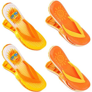 Inhoud van de levering: je ontvangt 4 stuks strandhanddoekclips in 2 stijlen, slippers vorm creatief design, stijlvol en aantrekkelijk. Elke maat is ongeveer 11,5 x 3,8 x 9,2 cm, geschikt voor elke maat strandstoel, zodat je je kleding of handdoeken veilig kunt opbergen. Op stoelen met De clips. Kwaliteitsmateriaal: de handdoekclips voor ligstoelen zijn gemaakt van hoogwaardig ABS, robuust en duurzaam, licht en eenvoudig te dragen of op te bergen, je kunt je handdoeken gemakkelijk bevestigen. Breed toepassingsgebied: de handdoekclips kunnen aan je verschillende behoeften voldoen, ze kunnen niet alleen handdoeken vastklemmen, maar ook droge kleding zeer goed, beveiligen kleding, beddengoed, dekbedden en schoenen aan het touw om wind te voorkomen. Perfect voor dagelijks gebruik, strand of reis.