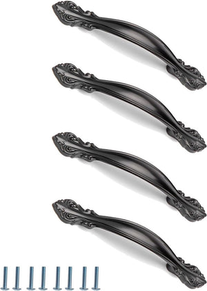 4 stuks zwarte retro deurgreep, kastgreep, zwarte booggreep, met 8 schroeven voor keukenkastdeuren, ladegrepen, deuren in verschillende stijlen (zwart)