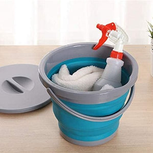 5 liter emmer met deksel, opvouwbaar, poetsemmer met deksel, rond, draagbare en opvouwbare kunststof PP TPR-materiaal, visemmer voor buiten binnen