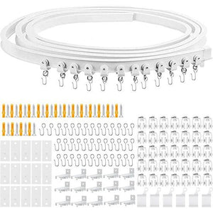 5 meter gebogen gordijnrail met stille rollen, flexibele gordijnrail, buigbare plafondhouder, gordijnscheidingswand, zacht raamrailsysteem, accessoires met 38 haken (128 stuks)