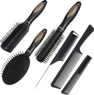 6 stuks haarborstelset, massagekammen, meerdere stijlen, borstelharen voor vrouwen, mannen, thuis, reizen