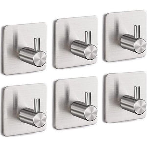 6 stuks handdoekhouders zilver extra sterk, haken kleefhaken zonder boren, 6 stuks, zelfklevende haken, duurzame wand- en montage, roestvrij, zilver 6 stuks