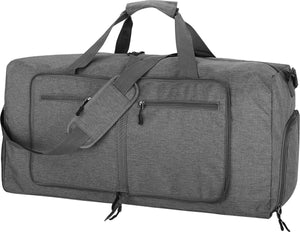 60L reistas grote opvouwbare sporttas heren dames met schoenenvakken waterdichte saunatas reistas voor sport vakantie gym 's nachts, hennepgrijs