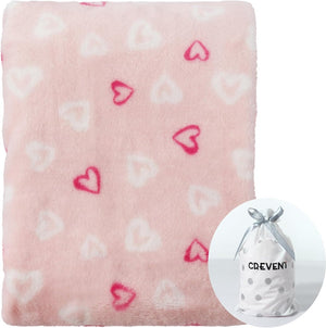 75 cm x 100 cm, lichte, gezellige pluche pluizige warme fleece babydeken voor meisjes en peuters, wieg (roze hart)