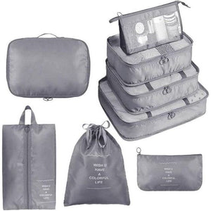8-delige kledingzak, verpakkingskubus, verpakkingskubus, vakantie- en reis-hangmandset, bagage-organizer reiskubus, bagage-organiseringssysteem, verpakkingskubus, grijs