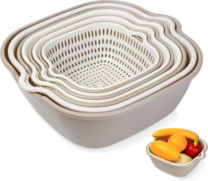 8-delige multifunctionele keukenzeefset, 2-in-1 keukenzeef, keukenvergiet, pastazeef, kunststof dubbellaagse afvoermand, rijstwaskom met zeef, gootsteenzeef voor fruit,