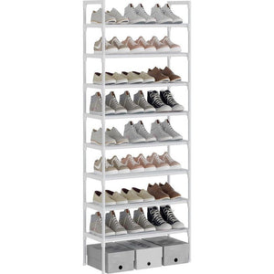 Met de afmetingen ca. Dit schoenenrek is 56 x 30 x 140 cm groot en biedt plaats aan maximaal 16 paar schoenen voor heren of 24 paar voor dames en kinderen. Dankzij het moderne design is hij geschikt voor elke interieurstijl en sluit hij naadloos aan bij je bestaande interieur. We hebben ook een extra voethoogte van 12 cm ontworpen, waardoor je extra opbergruimte onder de bodem van het schoenenrek krijgt. Bewaar meer stukken en houd uw ruimte georganiseerd zonder concessies te doen aan de stijl. Ondanks de stevige constructie is dit schoenenrek licht van gewicht, waardoor het gemakkelijk te verplaatsen en schoon te maken is. De montage is een fluitje van een cent en binnen 10 minuten klaar, zodat u binnen een mum van tijd kunt genieten van het gemak van ons schoenenrek. Het is een doe-het-zelf-project dat je vol vertrouwen alleen kunt uitvoeren. Verbeter uw schoenenorganisatie met ons sterke, stijlvolle en eenvoudig te monteren schoenenrek. Bestel nu en ervaar het verschil dat het voor uw huis kan maken.