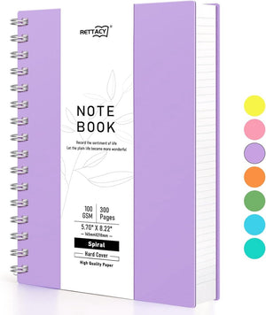 A5 notitieblok, notitieboek, spiraalgebonden notitieboeken, 300 vellen/150 pagina's om te schrijven, 100 g/m² college-gelinieerd papier, pvc-hardcover, 14,5 x 21 cm, lila