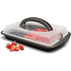 De keukenredder: nooit meer stress bij het transport van je zelfgebakken meesterwerken. Deze robuuste taarthouder is de ultieme metgezel voor iedereen die gebak en cake veilig en stijlvol wil vervoeren. COMFORT ONTMOET FUNCTIONALITEIT: De kap is uitgerust met een ergonomische handgreep die het dragen kinderspel maakt. En met de zijdelingse kliksluitingen blijft alles luchtdicht en veilig gesloten. Eenvoudige reiniging, meer tijd om te genieten: na het feest is het voor het feest! De taarttransportbox kan moeiteloos onder stromend water of in de vaatwasser worden gereinigd. Zo heb je meer tijd voor de mooie dingen in het leven. Meer dan alleen een doos: deze transportbox is een echte alleskunner en kan ook perfect als serveerschaal voor tapas, snacks en meer worden gebruikt. Zo wordt elke gelegenheid een bijzondere ervaring