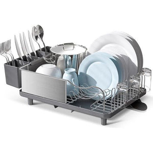 Roestbestendig: dit afdruiprek is gemaakt van hoogwaardig roestvrij staal, dat uitstekend bestand is tegen roest en ideaal is voor keuken- en serviesgoed. Grote capaciteit: gemaakt van een groot antiroestframe, geschikt voor het sorteren van serviesgoed zoals borden, schalen en potten en pannen. De zeldzame en unieke bestekhouder met 4 compartimenten zorgt voor een enorme opslag van keukengerei Verstelbare afdruiprek: het afdruiprek is ontworpen als lekbak met 2 selecteerbare richtingen om water uit het rek op te vangen. Je kunt hem aan de rechter- of linkerkant van de spoelbak naar keuze plaatsen. Eenvoudig te installeren: er zijn slechts 4 onderdelen en geen complexe installatie van dit droogrek. Plaats eenvoudig de uitloop op de bodem van de bak, plaats het frame over het afdruipvlak en je bent klaar voor gebruik met de keukengereihouder. Geen gereedschap nodig. Afmetingen: Er zijn 3 kleuren (zwart, grijs) en altijd één geschikt voor jouw stijlvolle keuken. Afmetingen (L x B x H): 50 x 32 x 15,6 cm.