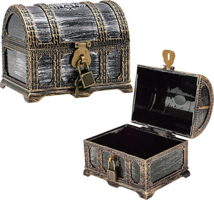 Afsluitbare schatkist voor kinderverjaardag, schatkist bruiloft met slot, kunststof piraten, schatkist, klein, bewaren en decor, schatkist piraat, schatfeest (1)
