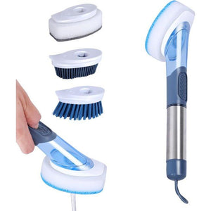 Afwasborstel met afwasmiddeldispenser, reinigingsborstel met 4 verschillende reservekoppen, keukenreinigingsborstel met 27 cm steel voor servies, potten, keukenspoelbakken reiniging