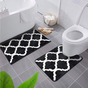 Antislip badmatset, 2-delig, zacht, hoogpolig, badkamertapijt, set microvezel, 2-delig, zwart Antislip badmatset, bestaande uit 2 stuks, zacht en hoogpolig, badkamertapijt, set van microvezel, ook bestaande uit 2 stuks, in de kleur zwart.