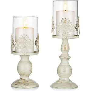 ELEGANT ONTWERP: Metalen voet, bloemendecoratie, glazen kap op perfecte hoogte, mooi ogend en stijlvol, zelfs als je alleen staat; een must-have decoratief item ANTIEKE AFWERKING: Antiek verouderde ivoor- of zwarte afwerking past goed bij een rustieke boerderij of moderne omgeving VEELZIJDIGE ORKAANHOUDER: Plaats eenvoudig een geurkaars of kunstbloemen erin, in een andere kleur die bij uw interieur past of verandert met het seizoen. Een geweldige displayhouder voor het middelpunt van het tafelblad VERSCHEIDENHEID AAN HOOGTEN: 2 verschillende hoogtes, 27 cm/10,6" en 33cm/13" Geschikt voor bruiloft, feest, verjaardag, doop, quinceanera, Bautizo, kerstdecoratie en dagelijkse woondecoratie ELEGANT ONTWERP: Metalen vo