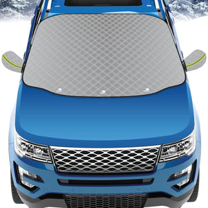 Magnetische autoruitafdekking - Op koude en besneeuwde dagen is het een luxe om uw huis met een schone voorruit achter te laten. Geniet van uitgebreid zicht en blijf het hele jaar door veilig met deze handige, waterdichte magnetische voorruithoes DEKKING VAN VIER SEIZOEN - Of u zich nu voorbereidt op de lente, zomer, herfst of winter, deze weerbestendige magnetische voorruitbeschermer is ideaal. Perfect voor sneeuw, wind, vorst en hagel. Ultradik ontwerp – elke voorruitbeschermer bestaat uit vier duurzame lagen met dubbelzijdige aluminiumcoating. Deze extra dikke, stevige autoruithoes is temperatuur-, vlam- en scheurbestendig. Opvouwbaar en eenvoudig te gebruiken - Om aan de slag te gaan met deze draagbare, compacte hoes met handige zijspiegelkappen, hoeft u hem alleen maar te openen en binnen enkele seconden op te zetten. Als u klaar bent, vouwt u ze op en bergt u ze op. GESCHIKT VOOR DE MEESTE VOERTUIGEN: Deze magnetische sneeuwhoes voor de voorruit is geschikt voor middelgrote tot grote auto's, SUV's en vrachtwagens. Afmetingen: 153 x 127 cm Rust uw voertuig vandaag nog uit met uitgebreide bescherming