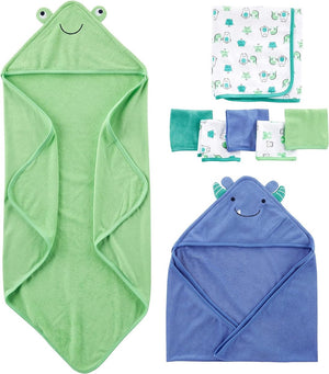 8-delige set met vijf washandjes, twee handdoeken met capuchon en een handdoek. Gebreide binding, met jersey gevoerde capuchon. Washandjes: 22,9 x 22,9 cm (9 x 9 inch); handdoek: 74 x 74 cm (29 x 29 inch). Betrouwbare Carter-kwaliteit, voordelige prijzen en probleemloze verpakking. Carter's is het bestseller merk voor peutermode in de VS. Generaties Amerikaanse gezinnen vertrouwen erop dat ze hun leven vereenvoudigen. Carter's biedt een breed scala aan stijlen tegen geweldige prijzen.