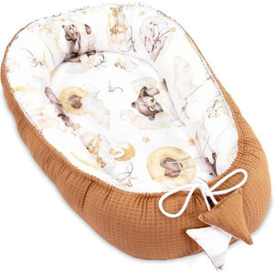 Babynestje voor pasgeborenen baby's, 90 x 50 cm, handgemaakte cocon, dubbelzijdig van katoen, wafel met babynestje, sluimerbeer, lichtbruin