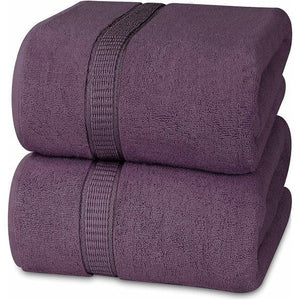 Badhanddoek groot van katoen, set van 2 - douchehanddoeken, handdoeken groot 90 x 180 cm (pruim)