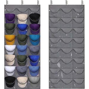 Baseball pethouder organizer hangt achter de deur, pethouder met transparante diepe vakken, hoedenhanger met 24 vakken, hoedenopbergtas met metalen haken (donkergrijs)