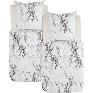 Beddengoed 135 x 200 cm, 4-delig dekbedovertrek - beddengoedset 135 x 200 cm microvezel met 2 kussenslopen 80 x 80 cm, Öko-Tex beddengoedset marmer wit patroon met ritssluiting