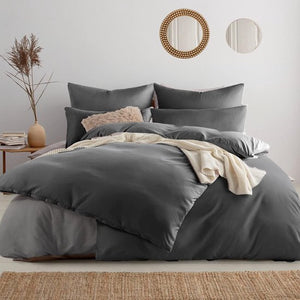 Beddengoed 135 x 200 cm, 6-delig, antraciet, 2 dekbedovertrekken 135 x 200 cm + 2 kussenslopen 80 x 80 cm + 2 kussenslopen 40 x 80 cm, zacht en strijkvrij, microvezel, met ritssluiting