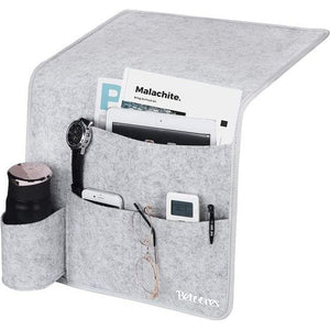 Bedorganizer, nachtkastje organizer, vilten bedplank organizer met flessenhouder voor boek, tijdschriften, iPad, mobiele telefoon, afstandsbediening - lichtgrijs
