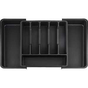Bestekhouder, bestekbak, uittrekbare bestekhouder voor laden, van kunststof, met 8 vakken, geschikt voor lepels, vorken, messen (33,5-56,5 x 6 x 37,5 cm) (zwart)