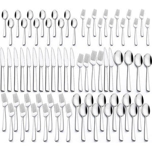 • Uitstekend handwerk en ergonomisch design: de gladde randen en het klassieke vormontwerp zorgen ervoor dat de bestekset er prachtig uitziet. Er zijn geen ruwe plekken of scherpe randen op de messen, vorken en lepels die zeer comfortabel te gebruiken zijn, zonder je mond te beschadigen. Bovendien hebben onze tafelmessen en steakmessen een scherp lemmet, de grote punten bevatten kleinere punten om de scherpte te garanderen en de ergonomische handgreep maakt je comfortabel en eenvoudig te bedienen.